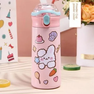Изолированная чашка из нержавеющей стали 304 в мультяшном стиле, портативная, нетоксичная, для занятий спортом на открытом воздухе, термос с соломинкой, стакан для воды с соломинкой 500ml
