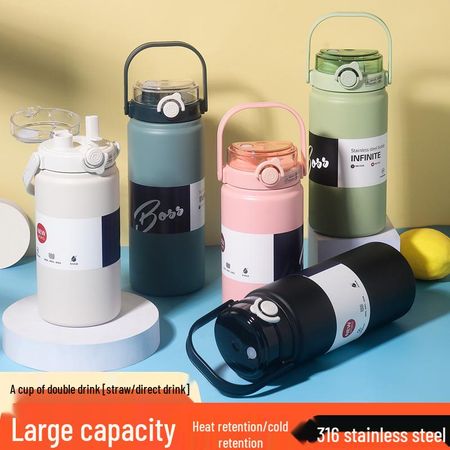 Изолированная чашка-соломинка из нержавеющей стали 316 — Большая вместимость, портативная для студентов 1000ml чёрный