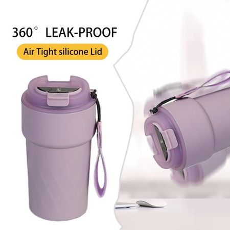 Изолированная кружка, 510 мл, дисплей температуры, портативная портативная кофейная чашка из нержавеющей стали со шнурком и герметичной крышкой, дорожная кофейная чашка белый