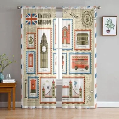 Изысканные прозрачные шторы с печатью для путешествий в Соединенном Королевстве, тюлевые шторы для спальни, гостиной, кухонные оконные вуали, занавески 135W x 114H(cm)