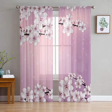 Японский розовый цветок вишневый цвет белый тюль прозрачные шторы для гостиной спальни декор окна занавеска вуаль органза шторы W135 x H115cm x1Grommet Top