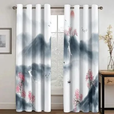 Японский стиль Китайская живопись Пейзаж Облако Высокая затемняющая штора для спальни Гостиная Окно отеля 2 шт затемняющая штора W55 X H120cm X 2Grommet Top