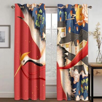 Японский стиль животное зверь дракон тигр журавль волна высокая затемняющая штора спальня гостиная студия окно затемняющая штора 2 шт. W55 X H120cm X 2Grommet Top