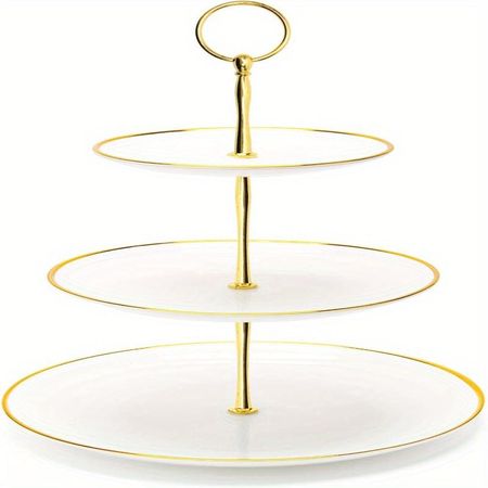 Элегантная 3-х уровневая подставка для кексов с золотистой окантовкой — идеально подходит для чаепитий, детских праздников и свадеб, прочный пластиковый поднос для десертов