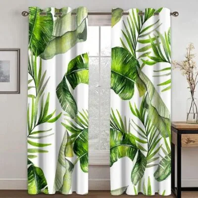Элегантные тропические шторы с принтом листьев и ушка для домашнего декора, люверсы для оформления окон для спальни, офиса, кухни, окон (50Wx50H)x2(CM)&Hook