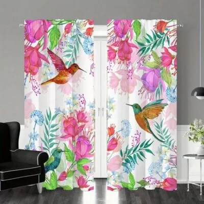 Элегантные винтажные декоративные шторы для гостиной с изображением колибри и цветочным принтом в стиле бохо из полиэстера и жаккарда, 2 шт. (W50H160cm)-2pcsGrommet Top