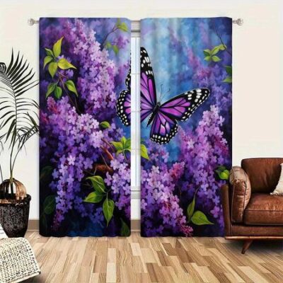 Элегантные винтажные жаккардовые шторы из полиэстера с цветочным принтом в виде бабочек и подхватом, пригодные для машинной стирки, в пасторальном стиле, в стиле бохо 100W130H(CM)40x51inGrommet Top