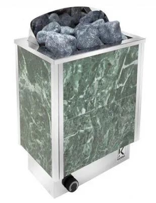 Электрические банные печи Karina TREND змеевик это линейка стильных моделей настенного типа мощностью от 2 до 9 кВт. Стальной корпус помещен в облицовку из натурального змеевика, который не только служит в декоративных целях, но и является превосходным теплоаккумулятором. Электрокаменки не требуют монтажа дымохода, удобны в эксплуатации и обслуживании.