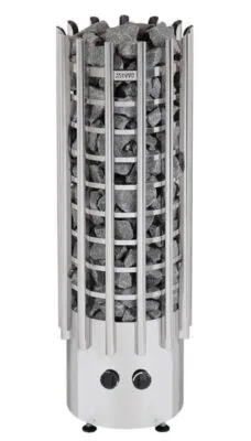Электрокаменка HARVIA Glow TRT70E без пульта имеет очень компактную форму и тем самым не занимает много места в парилке, а значит есть возможность эффективного использования внутреннего пространства комнаты. Поливать камни водой можно не только сверху, а и с боку благодаря вытянутой решетчатой форме и открытым камням.