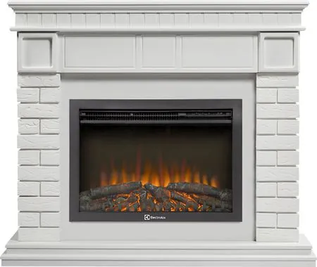 Комплект электрокамина от Electrolux (Электролюкс) EFP/P-2520LS N с порталом Firelight Bricks 25 камень белый, белая эмаль позволяет создать атмосферу уюта и домашнего очага в бытовом помещении. Внешний вид классического портала — это современный взгляд на средневековые мотивы европейских замков.