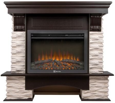 Электрический камин Electrolux (Электролюкс) EFP/P-2520LS N с порталом Firelight Pietra Nuovo 25 камень сланец белый, шпон темный дуб выполнен в формате классических решений для бытовых помещений. Каменная отделка имитирует скалистый сланец, что придает эксклюзивное сочетание природности и классического стиля.