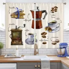 2 шт. 3D Кофейная иллюстрация Кофейный карниз для штор Карманный черный расписанный вручную Кофейный элемент Печатный светофильтрующий кухонный занавес 2x100W240H(CM)&Grommet Top