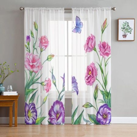 Эустома цветы акварель прозрачные шторы для окна гостиной прозрачная вуаль тюль занавески для спальни домашний декор 135W x 114H(cm)