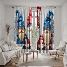 Комплект из 2 предметов HD, рождественские декоративные шторы с тремя дынями Санты, белые шторы с цифровой печатью, стиль домашнего декора, декор liv W52H63inchW132H160cm
