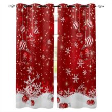 Рождественский шар Снежинка Красный фон Блэкаут шторы для детей Домашний декор Спальня Гостиная Высокая степень затенения Оконные шторы W135 x H60cm