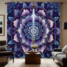 2 шт. HD декоративная штора с мандалой и цветком, фиолетовая завязка, штора с цифровой печатью, украшение для дома, стиль декора, гостиная, кровать W52H63inchW132H160cm