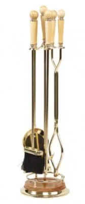 Набор Royal Flame (Роял флейм) D56303PRC золото для камина включает в себя четыре предмета это щетка, совок, кочерга и щипцы. Качественный каминный комплект выполнен из стали, покрыт специальной огнеупорной краской, а держатели выполнены из дерева. Каждый инструмент отлично справиться со своей задачей, например, щетка легко очистит топку от золы, а щипцы помогут разложить дрова.