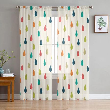 Капли воды, красочные ретро современные тюлевые шторы с принтом для спальни, декора балкона, окна, креативная модная домашняя прозрачная занавеска 135W x 114H(cm)