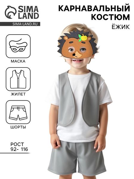 Главная » Все для дома Карнавальный костюм «Ёжик», жилет, шорты, маска фетр, рост 92-116 см Просмотров 1 Карнавальный костюм «Ёжик», жилет, шорты, маска фетр, рост 92-116 см Страна Карнавалия