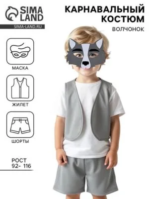 Главная » Все для дома Карнавальный костюм «Волчонок», жилет, шорты, маска фетр, рост 92-116 см Просмотров 1 Карнавальный костюм «Волчонок», жилет, шорты, маска фетр, рост 92-116 см Карнавалофф