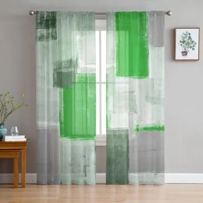 Картина маслом Абстрактные Геометрические Зеленые Вуали Прозрачные Шторы Гостиная Окно Тюль Шторы Кухня Спальня Шторы Домашний Декор 135W x 114H(cm)
