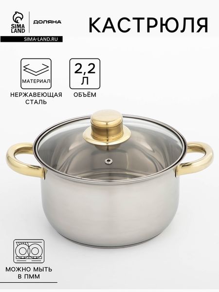 Кастрюля из нержавеющей стали «Доляна Роскошь» — идеальный выбор для вашей кухни! Трёхслойное капсулированное дно обеспечивает оптимальное распределение тепла и предотвращает пригорание пищи. Изготовлена из высококачественной нержавеющей стали, устойчивой к коррозии и долговечной. Имеет термостойкую стеклянную крышку и удобные ручки из нержавеющей стали. Подходит для всех типов плит и может быть использована в посудомоечной машине.Преимущества товара:Изготовлена из высококачественной нержавеющей стали, устойчивой к коррозии и долговечной.Трёхслойное капсулированное дно обеспечивает оптимальное распределение тепла и предотвращает пригорание пищи.Высокие стенки сохраняют натуральный вкус и полезные свойства продуктов.Термостойкая стеклянная крышка плотно прилегает к кастрюле, обеспечивая герметичность.Ручки из нержавеющей стали гарантируют надёжность и безопасность.Необычный дизайн ручек добавляет эстетическую привлекательность.Подходит для всех типов плит и может быть использована в посудомоечной машине.