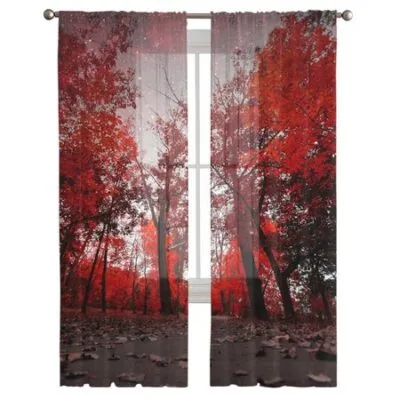 Кленовые листья Красный лес Звездное небо Тюлевые прозрачные оконные шторы для гостиной Спальня Современная вуаль из органзы Шторы Портьеры W135 x H137cm x2