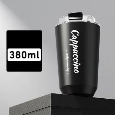 Кофейная кружка из нержавеющей стали с крышкой, термос, термос для воды, кафе, путешествия, посуда для напитков, изолированная бутылка для воды 380 мл 380ml чёрный