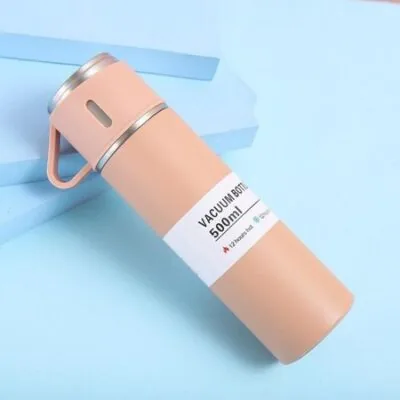 Колба с вакуумной изоляцией, термобутылка из нержавеющей стали с чашкой, двухслойная герметичная вакуумная термос из нержавеющей стали, 500 мл, бутылка для воды Single cup розовый