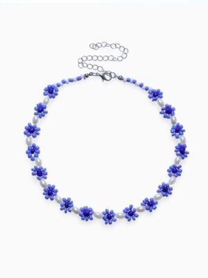Колье из бисера «Незабудки», сине-белое, 30 см