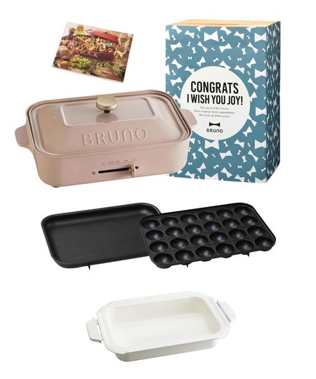 Компактная плита BRUNO Bruno, основной блок, 3 вида плит, керамическая кастрюля с покрытием, чехол для празднования Якинику, книга рецептов в комплекте, розовый, бежевый, стильный, милый