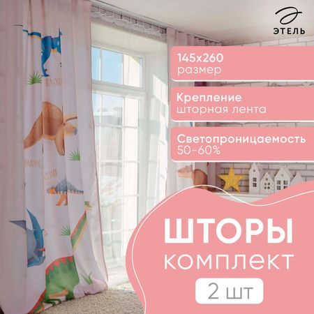 Главная » Все для дома Комплект Просмотров 16 Комплект штор "Этель" Динозавры 145*260 см-2 шт, 100% п/э, 140 г/м2. Этель