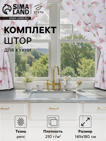 Главная » Все для дома Комплект Просмотров 12 Комплект штор для кухни с подхватами Этель "Tenderness" 149х180 см — 2 шт. Этель