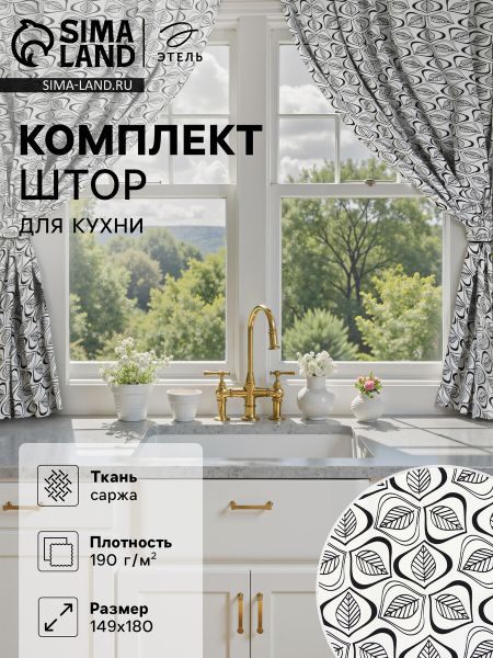Главная » Все для дома Комплект Просмотров 13 Комплект штор для кухни Этель Leaves, 149×180 см — 2 шт., подхваты — 2 шт., 100% хлопок. Этель