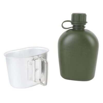 Комплект фляги для кемпинга, фляга для воды объемом 1 л, полиэтиленовая бутылка с чехлом для бутылки и кружкой для кемпинга, пешего туризма, пешего туризма, зеленый