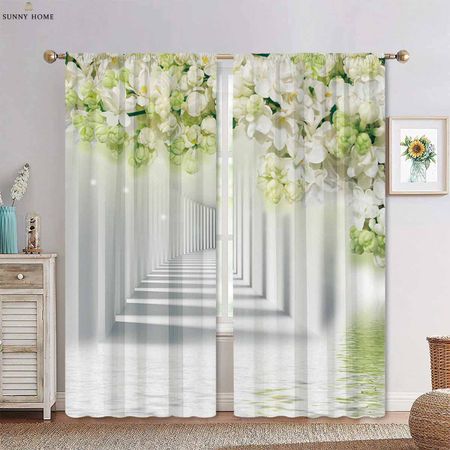 Комплект из 2 предметов цветочных 3D-печатных штор, пригодных для машинной стирки, для спальни, гостиной, кухни, декоративные шторы Four Seasons W100xH220(CM)x2PCSRod pocket