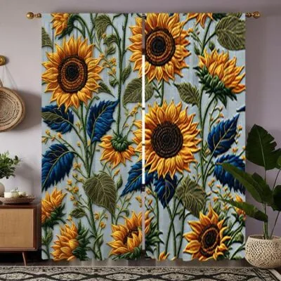 Комплект из 2 предметов, декоративная занавеска с вышивкой в виде подсолнуха, желтая занавеска с цифровой печатью, украшение для дома, стиль Decorat W52H84inchW132H213cm