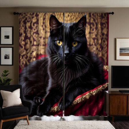 Комплект из 2 предметов, диван HD на черном фоне, декоративная занавеска с изображением кота, черная занавеска с цифровой печатью, украшение для дома, стиль, украшение для гостиной W52H84inchW132H213cm