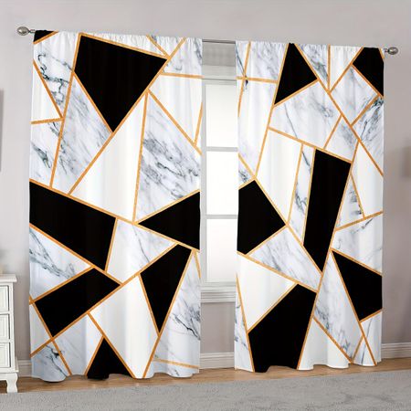 Комплект из 2 предметов с геометрическим цветочным принтом, шторы с карманами на штанге, полиэстер для гостиной, спальни, кухни, больше — легкий уход 100W130H(CM)40x51inGrommet Top