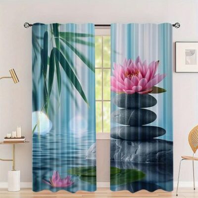 Комплект из 2 предметов, шторы с рисунком в виде цветка сливы, полузатемняющие, улучшающие конфиденциальность, дизайн кармана для спальни, гостиной, двери 100W130H(CM)40x51inGrommet Top