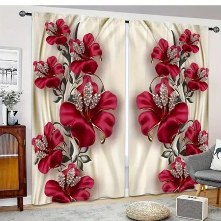 Комплект из 2 роскошных декоративных штор с принтом — дизайн с карманами на штанге для легкого подвешивания, идеально подходит для гостиной, спальни, кухни и т. д. 2x100W240H(CM79x95inGrommet Top