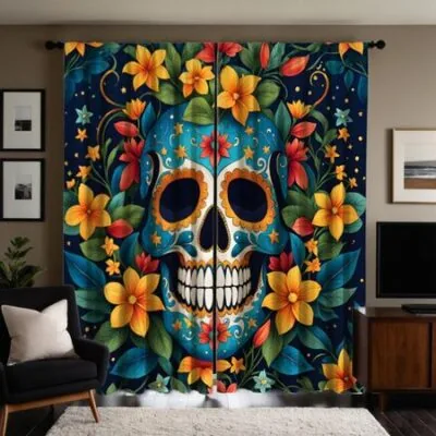 Комплект из 2 шт. HD Мексиканский День мертвых Цветы Цветочные занавески Синий Галстук цифровая печать занавески Домашний декор стиль Украсьте жизнь W52H63inchW132H160cm