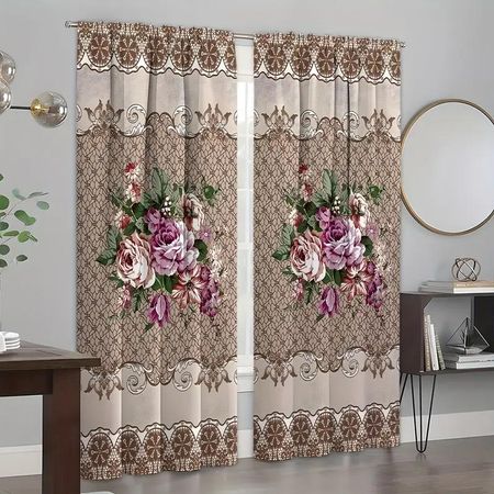 Главная » Все для дома Комплект из 2 шт. Элегантный цветочный и растительный узор для штор с карманами для уединения и декора в гостиной, спальне, кухне W65X60H(cm)X2PcsHook Просмотров 1 Yiran Furniture