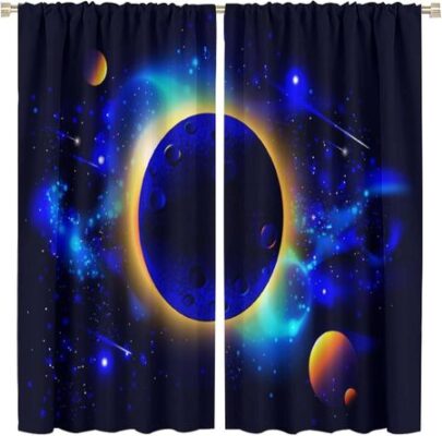 Комплект из 2 шт. штор для дверного проема в космической тематике с полиэстеровыми панелями в виде галактик для различных оконных декораций в комнатах 100W130H(CM)40x51inGrommet Top