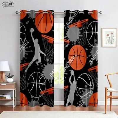 Комплект из 2 штук штор с 3D-принтом «Горячая кровь» для баскетбола, из полиэфирного волокна, декоративные шторы для спальни, гостиной, общежития W50xH130(CM)x2PCSRod pocket