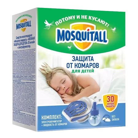 Главная » Все для дома комплект MOSQUITALL Нежная защита для детей фумигатор + жидкость 30 ночей от комаров Просмотров 1 Серия: Нежная защита Форма выпуска: фумигатор, жидкость Тип насекомого: комары Объём: 30мл Возраст: детский MOSQUITALL