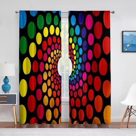 Коричневые круги в горошек с рисунком Тюлевые оконные шторы для гостиной, спальни, современная кухня, прозрачная вуаль, шторы, украшение 1 PCS W100XH250cm&Rod Pocket