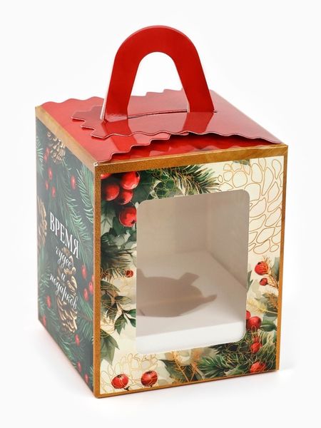 Очаровательная новогодняя коробка для одного капкейка — идеальный способ подарить маленькое сладкое удовольствие с атмосферой праздника.Компактные размеры 9,2 х 9,2 х 11 см делают её удобной для транспортировки и хранения десерта.Яркий дизайн с зимними узорами и праздничной символикой подчеркивает уникальность вашего подарка и придаёт ему особое настроение.Коробка изготовлена из прочного картона, что гарантирует сохранность капкейка и его презентабельный вид. Такой аксессуар идеально подойдёт для новогоднего подарка коллегам, друзьям или близким, добавив капельку волшебства