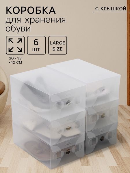 Коробка для хранения обуви с крышкой Large size, 20×33×12 см, 6 шт.