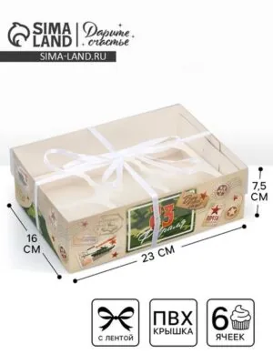 Главная » Все для дома Коробка для капкейка, кондитерская упаковка, 6 ячеек, «23 февраля», 23×16×7.5 см Просмотров 3 Коробка для капкейка, кондитерская упаковка, 6 ячеек, «23 февраля», 23×16×7.5 см Дарите Счастье